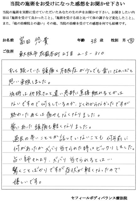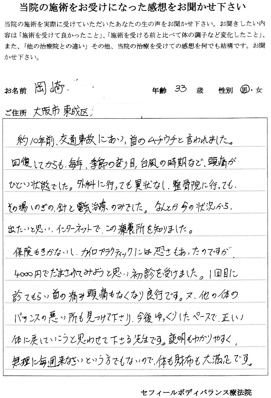 大阪市東成区 33歳 男性 頭痛・ムチウチ