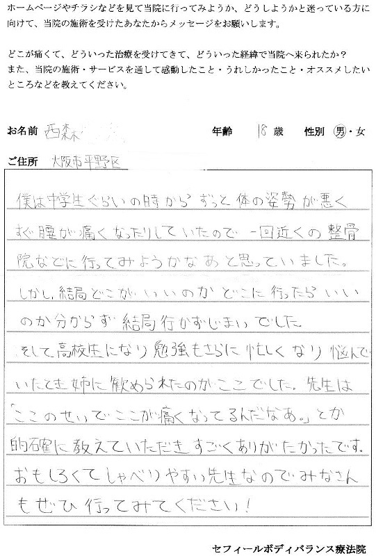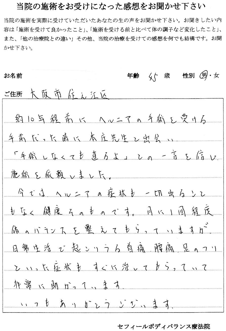 大阪市港区 56歳 女性 腰痛・めまい・頭痛